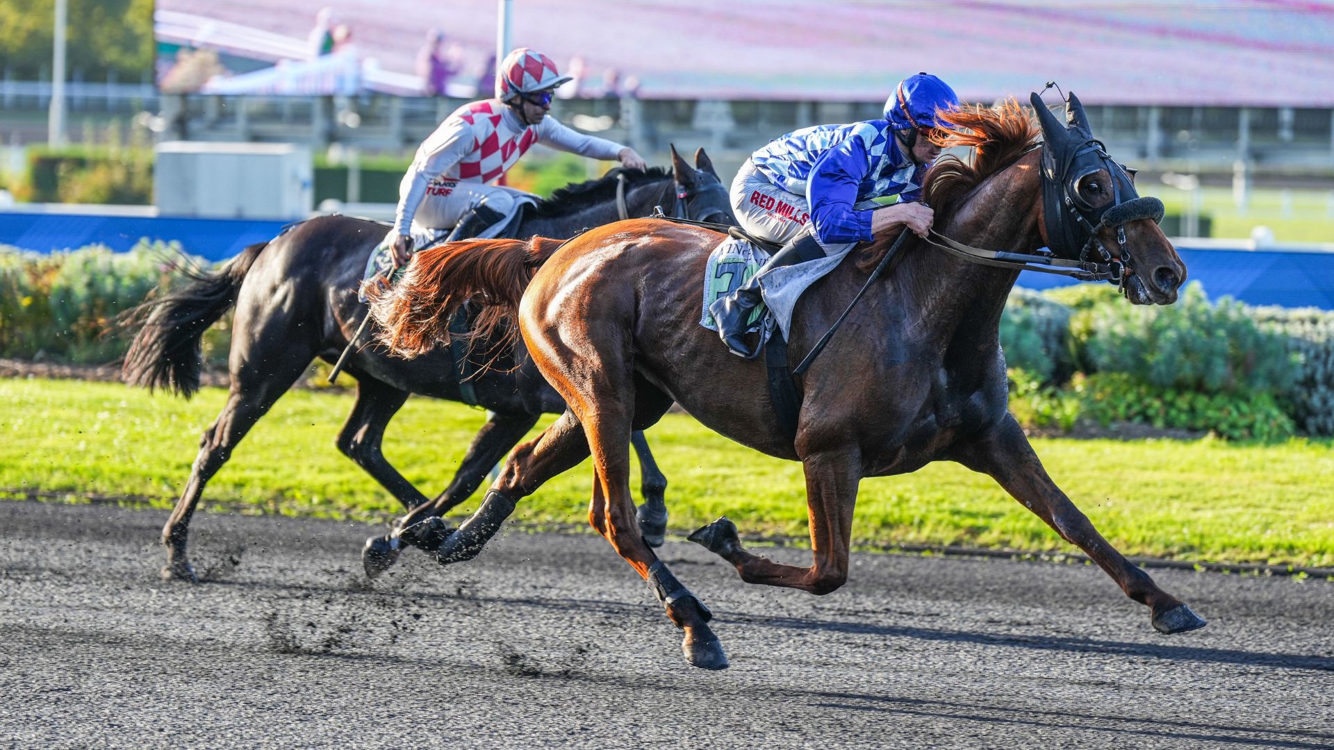 Il a fallu se donner au maximum pour s'imposer dans ce Prix Daphné (course E). Et au terme d'une âpre lutte, King De Choisel (Bilibili) parvient à résister d'un petit nez au favori Kiroyal du Vinois (Royal Dream), dont la série de trois victoires consécutives s'arrête là. Il s'incline tout de même avec les honneurs, étant contraint de naviguer à l'extérieur du futur vainqueur dans le dernier virage. Le protégé de Sylvain Dupont remporte ainsi une troisième victoire en 2025, saison allégée en courses (il ne s'agissait que de sa 6ème sortie de l'année). Il signe d'ailleurs sa première victoire à Vincennes, associé à Anthony Barrier qui a précisé au micro d'Equidia : "Il a été bon car il y a eu du rythme dès le début de course et on était tout de suite dans la bagarre. C'est un cheval vraiment très gentil et volontaire. Le chrono est très bon pour cette catégorie." 1'12''7 sur 2.700m, voici effectivement un chrono des plus flatteurs pour King de Choisel qui signe son nouveau record personnel. Quant à son driver Anthony Barrier, c'est du 100% lui qui n'avait que cette drive lors de la réunion vincennoise du jour.