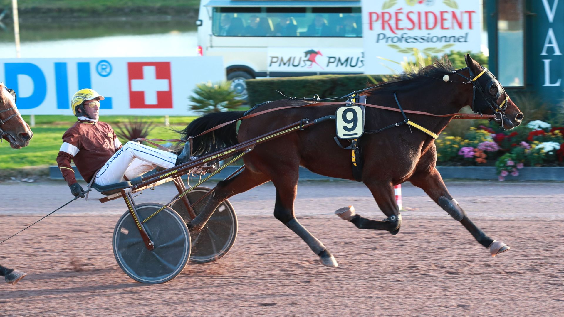 ©Aprh Il ne boxait pas dans la même catégorie que ses adversaires ce samedi dans le Prix Annick et Georges Dreux (Course A - Européenne). Sous la selle de Benjamin Rochard, Impala De Val (Viking de Val) a réalisé un nouveau tour de force, trottant 1'12''0 sur 2.875m (soit le nouveau record sous la selle sur cette distance qui était détenu par Homer de Fromentrel en 1'12''3). Bien qu'ayant un handicap initial de 25 mètres sur six de ses adversaires dans cette épreuve, le pensionnaire de Pierre-Edouard Mary s'est imposé avec 25 mètres d'avance au poteau d'arrivée. C'est dire si la 21ème victoire en carrière de ce hongre de 7ans a été très facile. De quoi procurer une nouvelle fois de l'émotion à son mentor sur l'antenne d'Equidia Racing. "C'est une machine de guerre. C'est un kiff monstrueux de le voir gagner comme ça. Moi qui ai été jockey, j'aurais bien aimé être à la place de Benjamin (Rochard) lorsqu'il a ouvert les mains à l'entrée de la ligne droite d'arrivée. Je ne pense pas que beaucoup de chevaux ont été plus vite qu'Impala sur cette piste au monté". Pour sa 25ème course en selle sur Impala de Val, Benjamin Rochard signe une 15ème victoire avec le champion de l'entraîneur mayennais (76% de réussite sur le podium). "C'est un grand cheval, n'hésite pas à dire le jockey gagnant au micro d'Equidia Racing. Lors de toutes ses courses sous al selle, le cheval fait de grandes performances. Pour lui, c'est normal. Dès la mi-tournant final, je savais que c'était gagné car il m'a bien repris le mors."