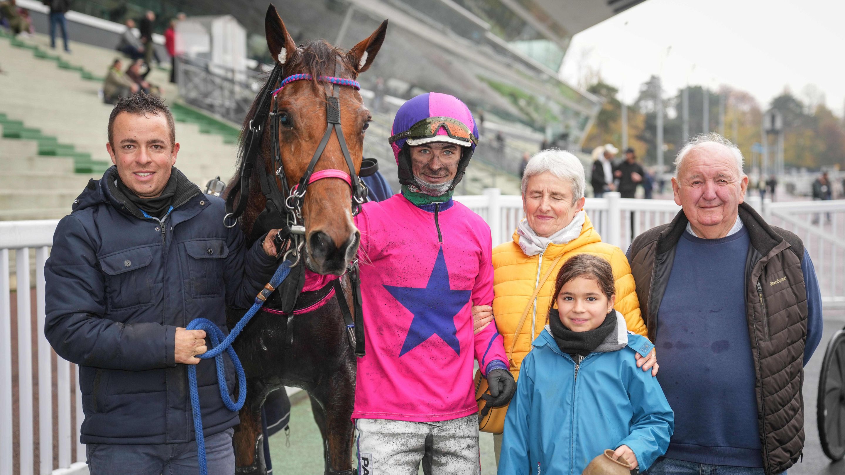 © ScoopDygaInstallé dans l'Orne à côté de Moulins-la-Marche depuis deux ans et demi, Grégory Simon présentait son neuvième partant à Vincennes en ce deuxième samedi de novembre avec Mambo de Jaudrais (Enino du Pommereux) qui était monté sur le podium en septembre. En le voyant très allant au bas de la descente et jusqu'à la sortie de la plaine où Benjamin Rochard était "pendu" sur ses rênes, on a pu craindre que le jeune entraîneur ne doive encore attendre avant de savourer un premier succès à Vincennes. Mais il n'en a rien été même si sa tâche a sûrement été facilitée par les problèmes d'allures de Maligno (Rockfeller Center). "On fait ce métier pour vivre un tel moment, confie toujours sous le coup de l'émotion et des trémolos dans la voix Grégory Simon, qui a notamment travaillé cinq ans auprès de Jean-Étienne Dubois. Je m'y attendais sans m'y attendre car on espère toujours gagner à Paris. Il méritait de gagner, lui qui n'avait encore jamais passé le poteau en tête. Gagner à Paris c'est la cerise sur le gâteau ! Il en fait toujours beaucoup trop mais il est courageux. Aujourd'hui (lire samedi), ce qui le fait gagner est d'avoir eu un dos depuis le bas de la montée, ce qui lui a permis de se détendre. Dans la ligne droite, son adversaire a bricolé mais je pense qu'il avait quand même le dessus. J'ai une dizaine de chevaux, j'en ai mis beaucoup en vacances pour la période hivernale qui n'est pas facile pour une petite écurie comme la mienne. J'ai commencé beaucoup avec des poulains et cela commence à porter ses fruits."