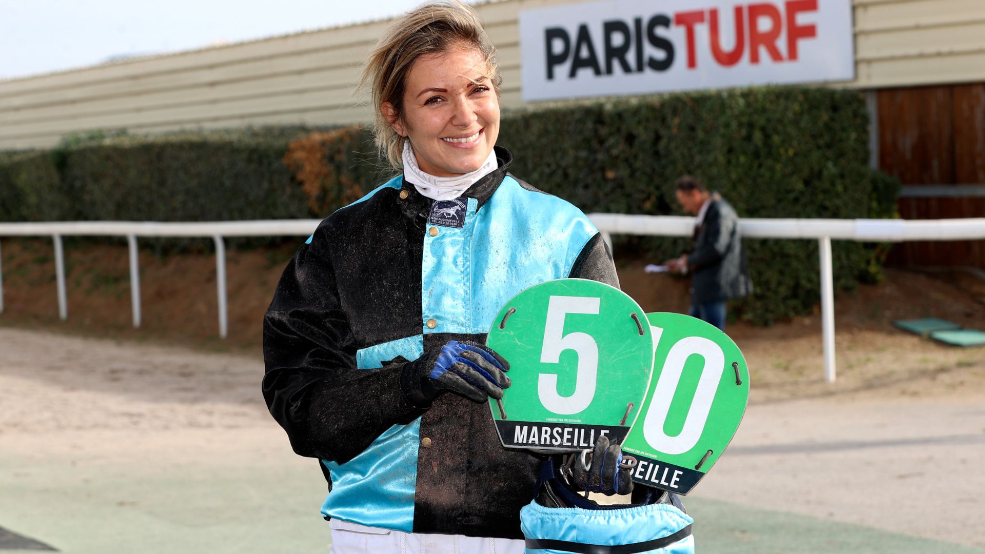©Couleur CasaquesÉmotions à l'arrivée de la première course de la journée marseillaise. Tout d'abord car l'écart séparant les deux premiers est minime et qu'il faut avoir recours à la photo-finish. Et surtout car il s'agit de la 50ème victoire en carrière de Marion Donabedian, au sulky de Houston d'Ariane (Viking de Val), synonyme de passage dans les rangs professionnels. Émue, elle s'est longuement confiée au micro d'Olivier Pivain sur Equidia : "C'est un vrai soulagement, ça fait du bien. Il y a eu des moments, des années même compliqués et arriver enfin à gagner cette 50ème, cela fait du bien. Je tournais autour depuis un moment et on me le rappelait ces derniers temps. Ayant donné naissance à mon fils puis du fait de mes ennuis de santé, j'ai très peu couru pendant plusieurs années et je suis contente pour tous ceux qui m'ont soutenue dans les moments difficiles que j'ai connus récemment. Je suis repartie de zéro, me demandant même si je ne devais pas arrêter le métier. Mais grâce à ces soutiens, j'en suis là." La prochaine étape ? Certainement passer du côté de l'entraînement sous la casquette de permis d'entraîner. À suivre.