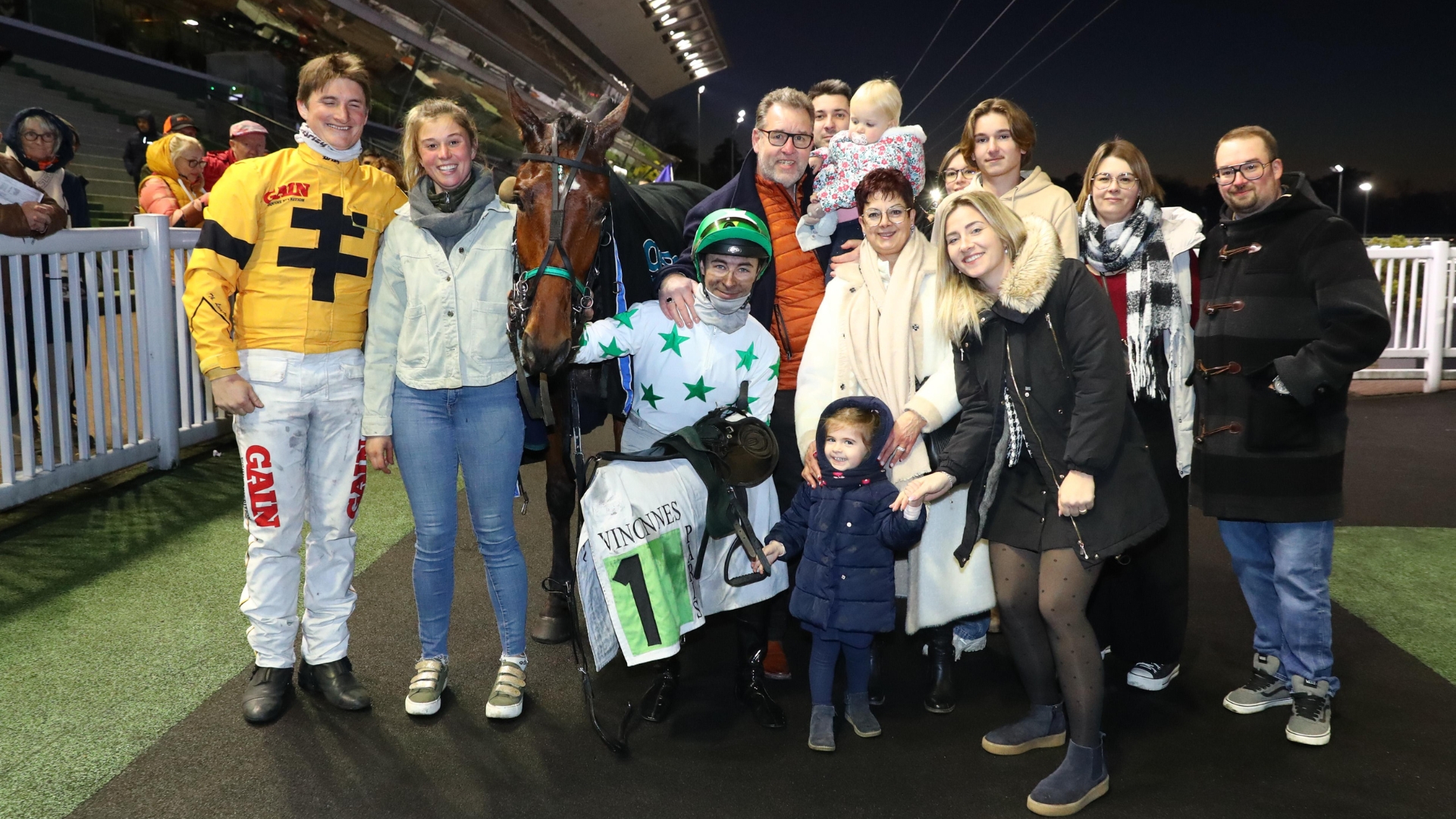 ©ScoopdygaPartie très vite en dehors de la piste et rapidement installé en tête, Jacaranda (Goetmals Wood) s’impose de bout en bout et permet à Benjamin Rochard de faire coup double, remportant par la même occasion le classement du Grand National des Jockeys. Bien que penchant sur sa droite, le pensionnaire de Thomas Levesque fait preuve de courage dans la phase finale pour résister au retour de la représentante de Christophe Gallier, Jolly Chic (Dollar Macker) qui perd donc son invincibilité sous la selle. Ravi, Thomas Levesque nous a dit : "Le cheval était vraiment monté sur sa dernière course au travail. C’est un super lot qu’il gagne aujourd’hui et avec la manière. J’ai dit à Benjamin de faire attention car il aurait pu avoir trop de gaz en partant. Cela peut lui arriver d’être un peu nerveux, c’est rare, mais cela peut arriver. Il n’est pas embouché dur non plus. Il a du coffre car aujourd'hui il est monté vite et il a dû faire un énorme dernier 1500m. Il a très peu couru et est tout neuf. Il est castré donc l’avenir est dans les courses fermé. Il faut réussir à le maintenir en condition et viser les bonnes courses. Il n’a pas de programme pendant 2 mois, le but c’est de le faire vieillir, on va donc patienter. " Battu, Jolly Chic connait sa première défaite sous la selle mais son jockey Mathieu Mottier est satisfait d'elle : "La jument fait une très belle course. J’étais bien dans les allures. On n’est pas allé très vite et Benjamin a bien joué le coup en tête. Peut-être que si je lui mets la pression plus tôt il aurait pu y avoir lutte mais la jument court top. Ce sont de supers chevaux. Il ne faut pas être déçu."