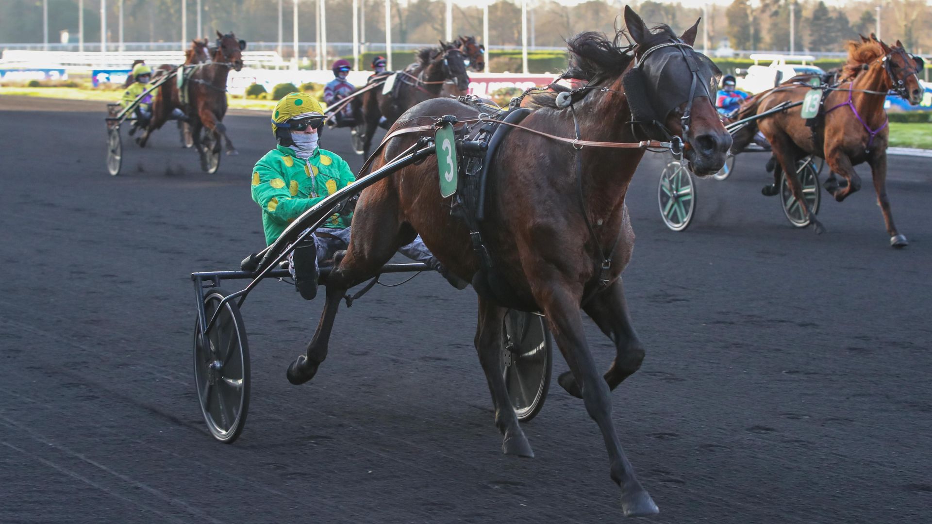©Aprh Très plaisant lauréat lors de ses débuts, le 7 décembre dernier sur l’hippodrome de Laval, Nottingen (Saxo de Vandel) reste invaincu à l'issue de sa première sortie sur la cendrée parisienne. Parti vite, puis relayé par le favori Not This Time (Ready Cash), le pensionnaire d’Arnaud Desmottes domine ce dernier à la lutte dans la phase finale.