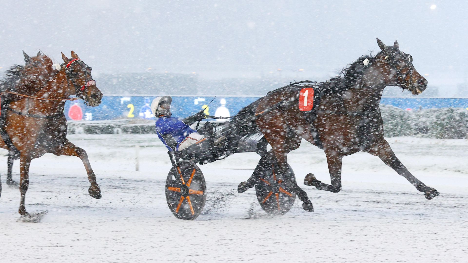 ©Scoopdyga Deuxième victoire de l'hiver pour la prometteuse Melia Barbes (Un Amour d'Haufor). Plus revue depuis le mois de novembre après un petit problème de santé, la protégée de Christian Biegon fait forte impression pour remporter cette course D, semble-t-il éloignée de son réel niveau. Mais son mentor prend son temps avec cette pouliche tenue en haute estime comme le confirment les propos de son driver David Thomain : "Elle est très douée, très trotteuse, promise à un bel avenir. Elle est bien proportionnée, c'est top d'autant qu'elle a encore les fers et les plaques." Melia Barbés se joue en final de ses adversaires et des conditions neigeuses pour remporter sa quatrième course en six sorties publiques. Elle est le troisième produit de la bonne Alphea Barbés (Look de Star), titulaire d'un palmarès de onze victoires.