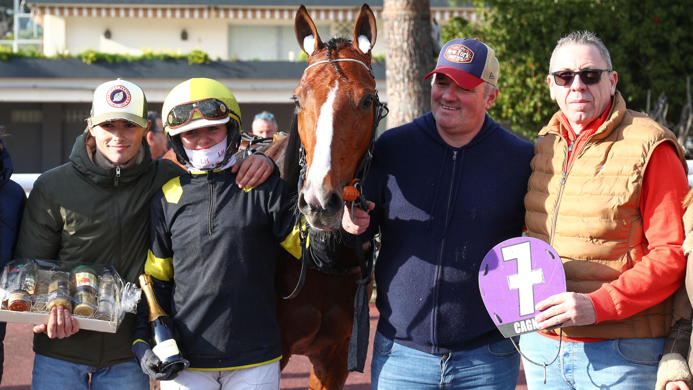 © ScoopDyga Il n’y a pas eu photo à l’arrivée du Prix Une de Mai, support des enjeux du Quinté+ ce mercredi à Cagnes-sur-Mer, avec Ister Man (Doberman) qui s’envole dans la ligne droite et laisse à nette distance Hudo du Ruel (Timoko) et Hymne du Gers (Bold Eagle). Le cheval entraîné par Jonathan Cuoq conserve ainsi son invincibilité avec Théo Briand avec lequel il s'était imposé le mois dernier à Marseille-Vivaux. Le jeune pilote confie au micro d’Equidia Racing : "Cela fait deux fois que je le mène et deux fois que je me régale. C’est un super cheval. Je n’avais trop pas de "gaz" pendant le premier tour. Il a pris le mors devant les tribunes et j’ai vu que les chevaux de la course étaient dans mon dos. Je sais qu'Ibiscus Man (N.D.L.R. : fautif dans la ligne droite alors qu'il était en 2ème position) ne tourne pas très bien, alors j’ai pris mon temps car le mien est un très bon vireur. Il a fait de très bons derniers cinq cents mètres. Je remercie son entraîneur qui me fait gagner mon premier Quinté+, c’est super".