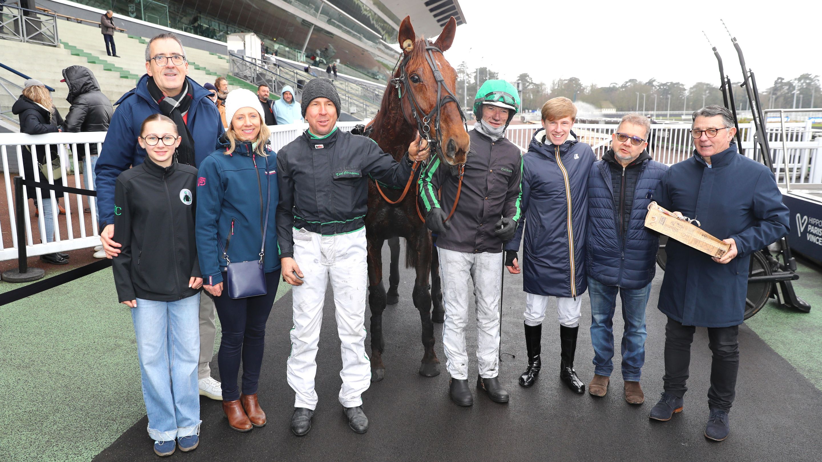 © AprhDans un Quinté+ pour femelles de 6 ans très ouvert dédié à la mémoire d'André-Louix Dreux ce samedi à Vincennes, Kassiopeia (Royal Dream) renoue avec un succès qui la fuyait depuis l'été dernier. Pour autant, cette pensionnaire de Karl Champenois n'avait nullement démérité entre-temps et s'était bien comportée à chaque fois sur le mâchefer parisien. "C'est une jument courageuse qui donne toujours le meilleur d'elle-même, dit-elle le professionnel angevin. Il faut la courir en lui masquant l'effort et se faire ramener. Par conséquent, elle n'a pas toujours été payée de ses efforts, mais elle a toujours fait de bonnes courses." Longtemps dans la boîte dans le wagon de deux, Pierre-Yves Verva réussit à décaler sa partenaire en troisième épaisseur dans le tournant final avant de la lancer au début de la ligne droite. On n'a alors plus vu qu'elle ou presque. "Je suis très content pour sa propriétaire (Michèle de Basire) qui a insisté pour que je la prenne à 3 ans alors qu'elle était qualifiée et inédite, poursuit le père de Mathis Champenois. Jeune, elle manquait de force et n'avait pas trop de mental. C'est pourquoi on n'en a pas abusé."