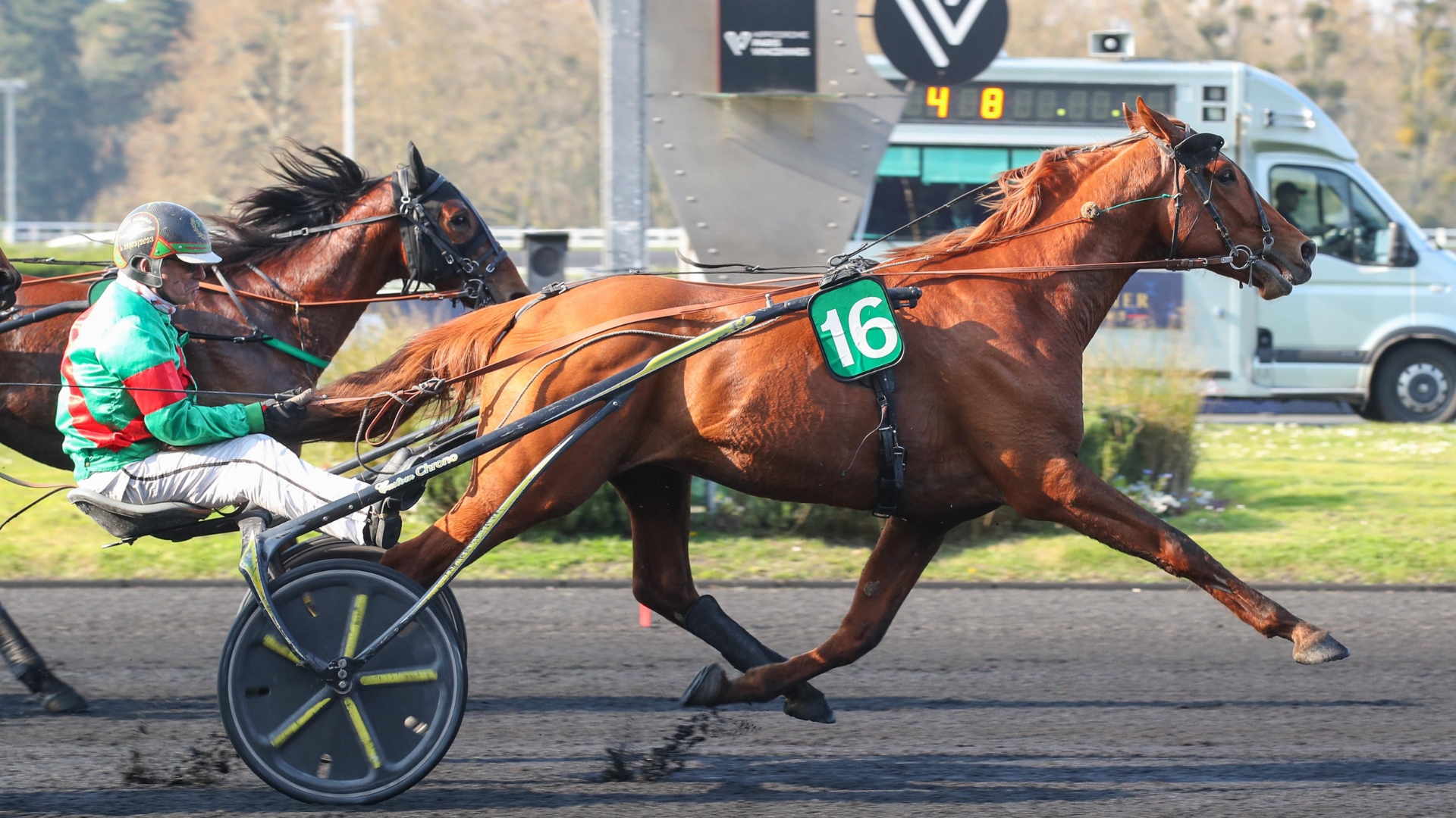 ©Scoopdyga Le style, le chrono et les impressions du pilote convergent dans la même direction : la performance de Karambar (Dollar Macker) est énorme. Après sa série victorieuse automnale, le représentant d'Halima Karrouchi en entame une nouvelle au printemps, signant un deuxième succès consécutif après celui acquis dans le Prix Emile Allix Courboy. Et le brio encore affiché aujourd'hui peut laisser penser que la série va se poursuivre, tout comme les propos d'Alexandre Abrivard : "Il ne fait que répéter, il n’a pas de défaut, il est génial. C’est sûrement un futur grand hongre et il faut bien viser les courses avec lui pour le faire durer le plus longtemps possible." De là à le comparer à Inexess Bleu ? Laurent Abrivard son entraîneur tempère mais pas très longtemps : "Ce ne sont pas les mêmes chevaux, c'est difficile de les comparer. Inexess n'est pas un grand démarreur et fait généralement les derniers 1.500m contrairement à Karambar qui démarre très bien. Aujourd’hui Karambar marche 1’11'', facile… Il faut juste qu’il ne lui arrive rien et il a un grand avenir. Il est sur le même chemin qu’Inexess et sont tous les deux dans leur jardin à Vincennes."
