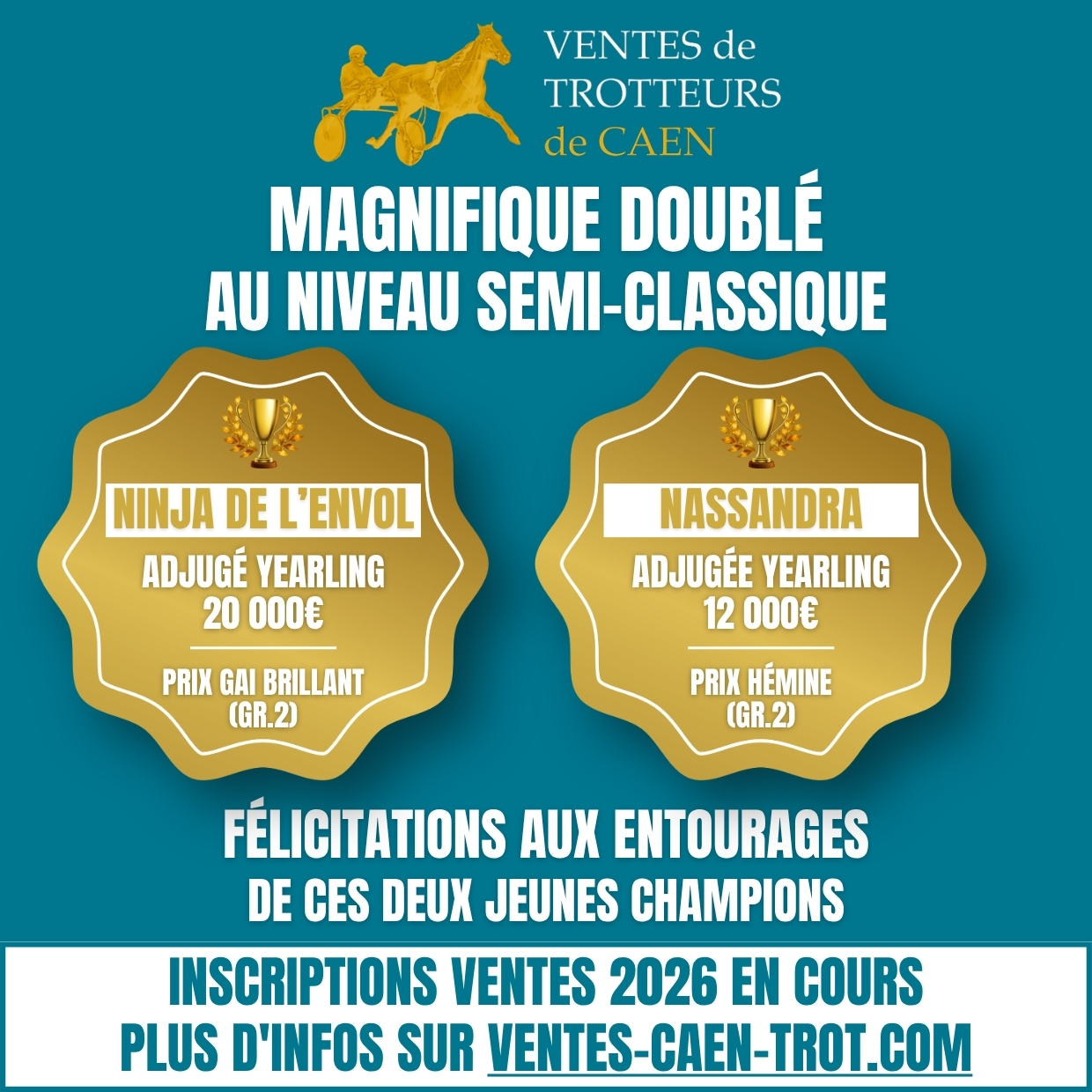 Ce succès au niveau semi-classique vient couronner une semaine particulièrement faste pour l’entourage de la lauréate. Nassandra porte en effet la casaque de Didier Louis qui enregistre un troisième succès en l’espace de quatre jours. "Ce n’est que du bonheur. Je ne m’y attendais pas car il fallait voir si la pouliche allait accepter cette nouvelle discipline. L’essai avait été concluant au travail cette semaine avec Adrien Lamy mais, au heat, c’était moins bien. J’aurais signé pour être quatrième ou cinquième aujourd’hui. Elle trotte 1'12''7 et le fait avec la manière. Si elle récupère bien et que son entraîneur est d’accord, nous allons aller sur le Prix d’Essai. Elle me fait rêver. J’ai gagné de belles courses ici à Vincennes mais celle-ci est vraiment magnifique", savoure Didier Louis.